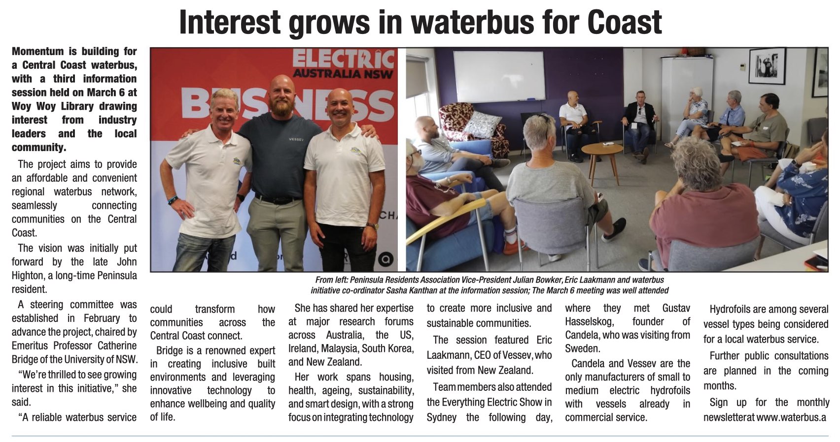 The Brisbane Waters WaterBUS initiative has featured in Central Coast Community News, Peninsula News, and Triple M Radio.