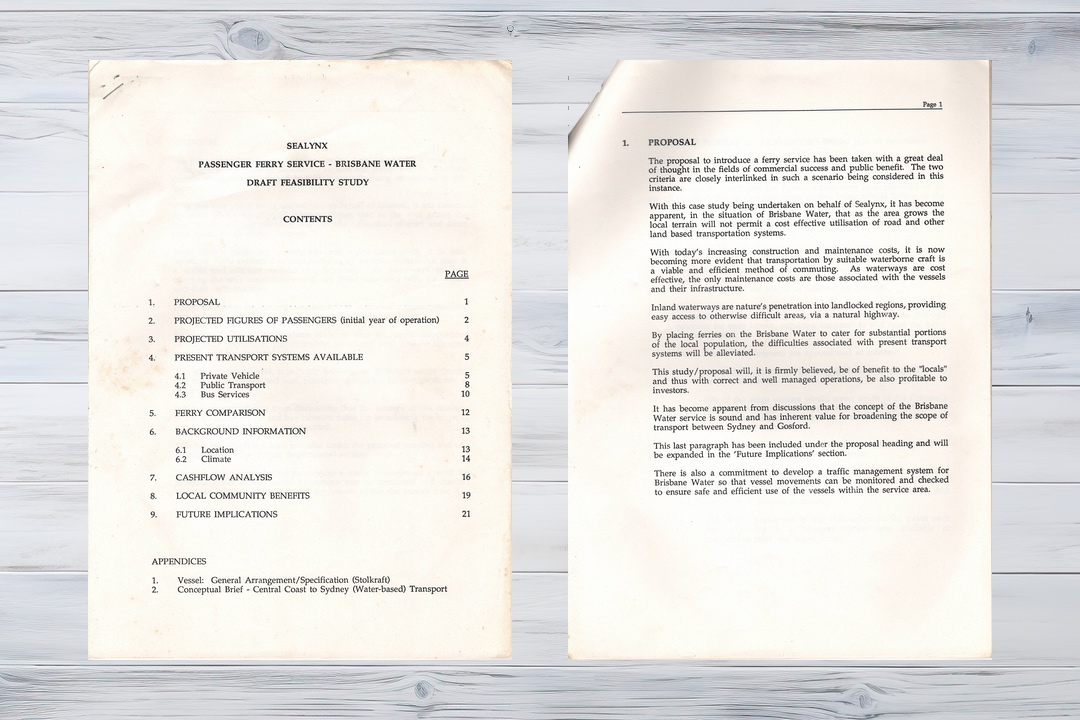 This draft pre-feasibility study was used to generate interest in a local ferry service within the waterways of the Central Coast in 1991.
