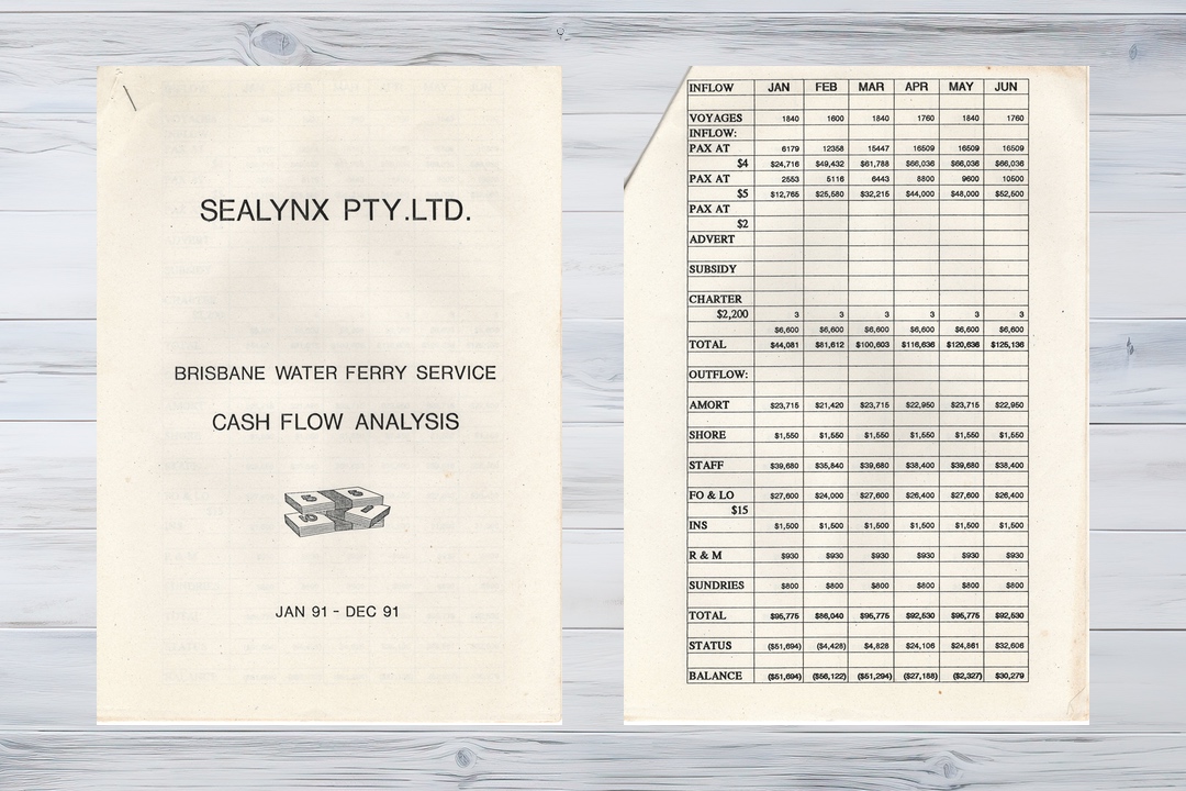 Accompanying the draft pre-feasibility study was a cash flow analysis which demonstrated the profitability of a local ferry service.