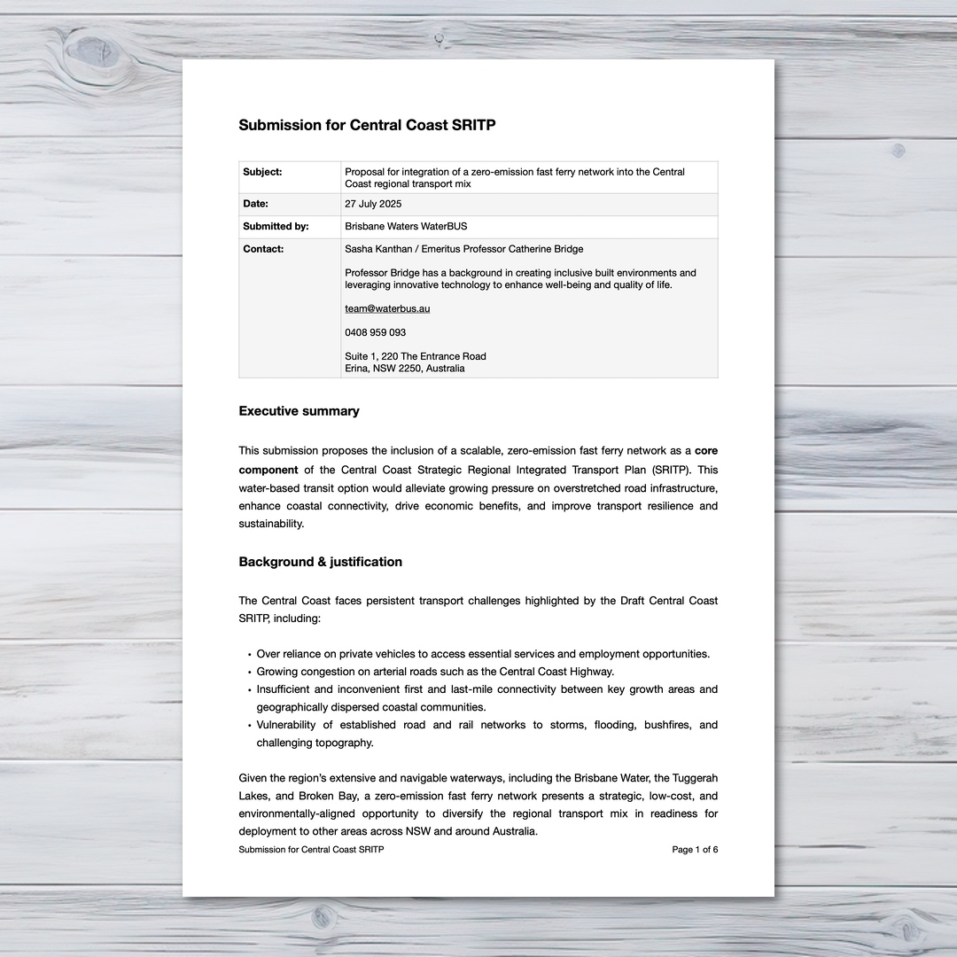 Here you will find a list of downloadable publications providing information on the local initiative for a zero-emission fast ferry service on the NSW Central Coast.